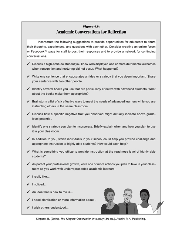 This process also helps teachers immediately initiate appropriate differentiation in the classroom. The KOI enables educators to enrich the learning environment for all learners while identifying gifted and talented students.